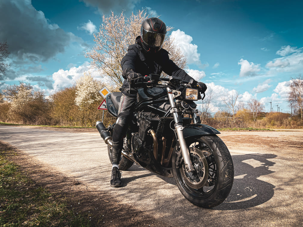 Le pantalon moto protège jambes et hanches contre l’abrasion et les chocs. Associé à une veste homologuée, il constitue une protection complète.